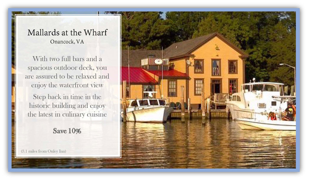 Lunch, Dinner, Bar – Onancock, VA ( 2.1 miles)