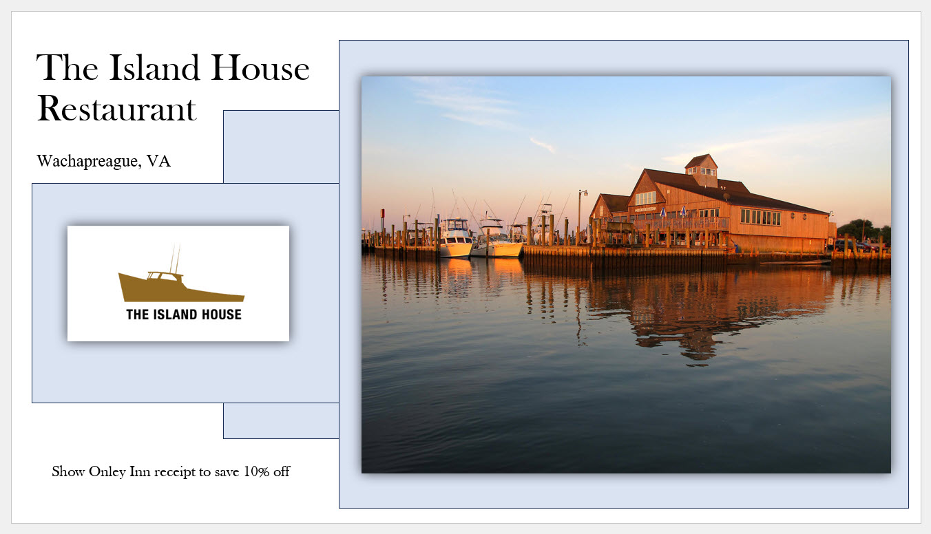 Lunch, Dinner, Bar - Onancock, VA (3.1 miles)